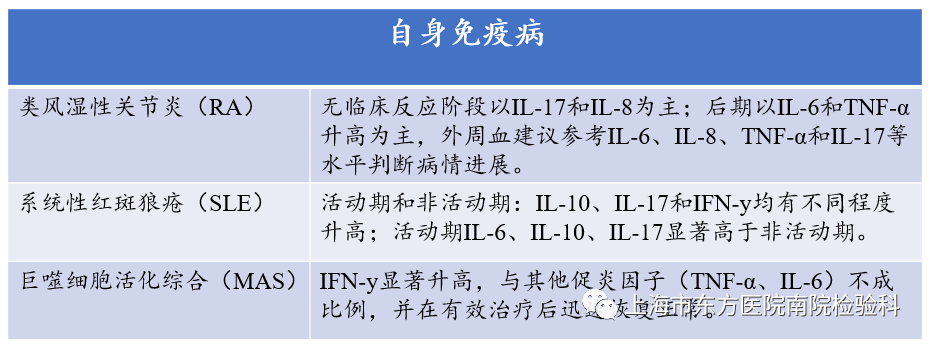 辅助诊断噬血细胞综合征:IL-6、IL-10、IFN-γ可区分噬血细胞综合征和脓毒症。辅助自身免疫病病情判断,监测免疫恢复情况。