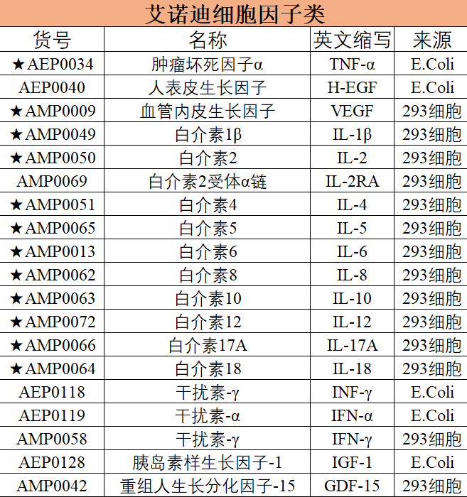 南京艾诺迪生物是一家专业从事IVD原料开发的科技型公司。细胞因子类原料是我司王牌产品之一,多数产品被国内大型IVD厂家采购并量产。现将我司细胞因子类产品列表如下,欢迎广大用户咨询、申请试用!